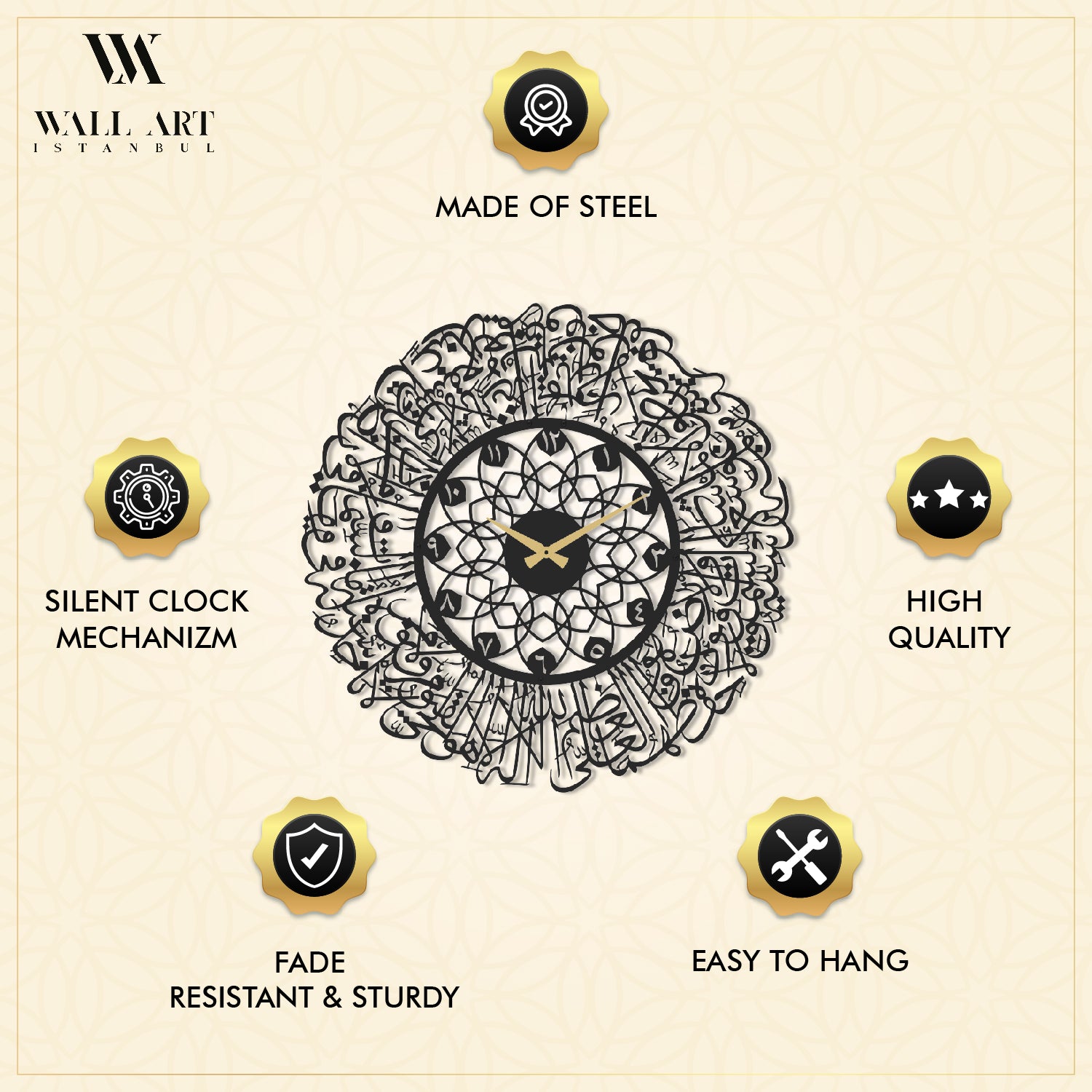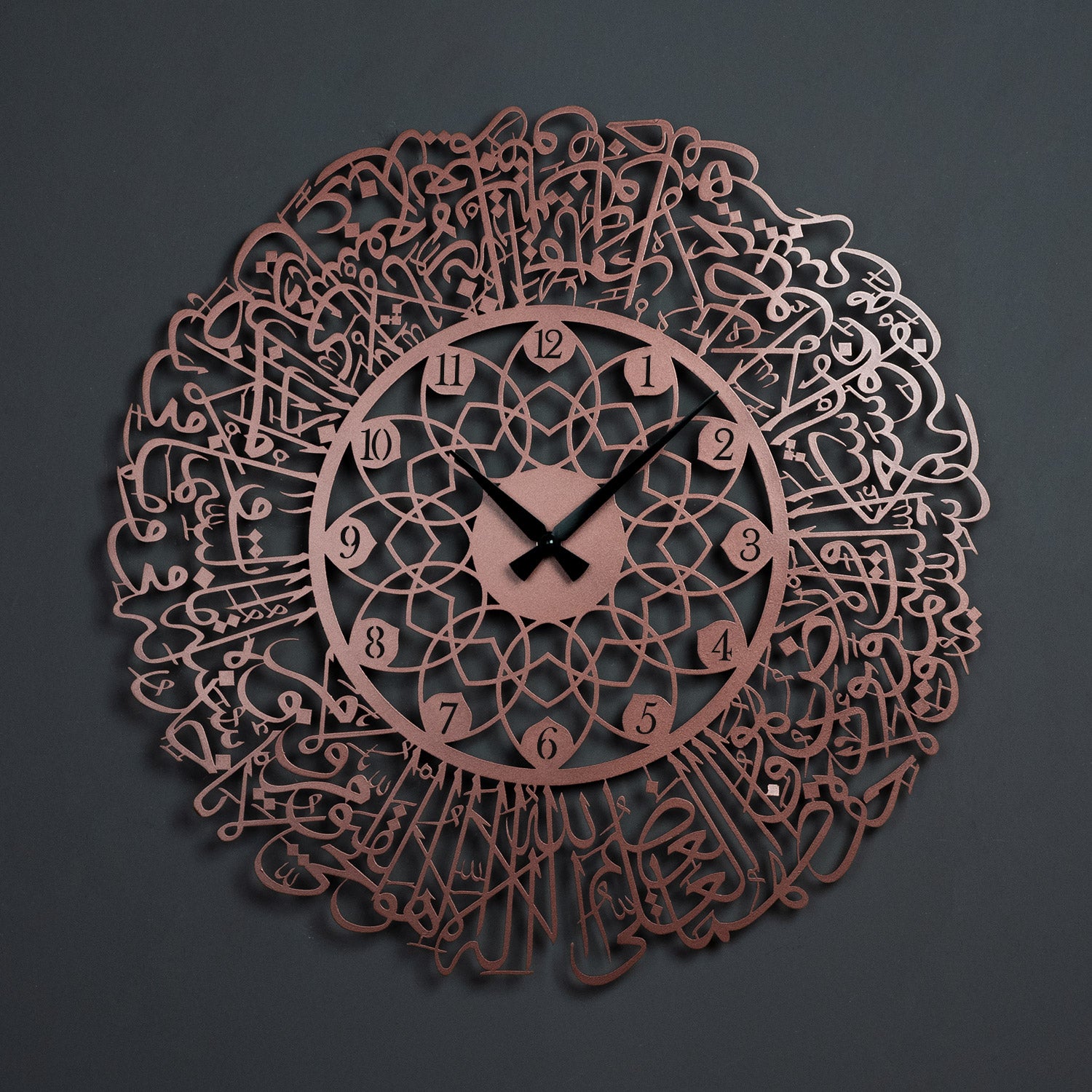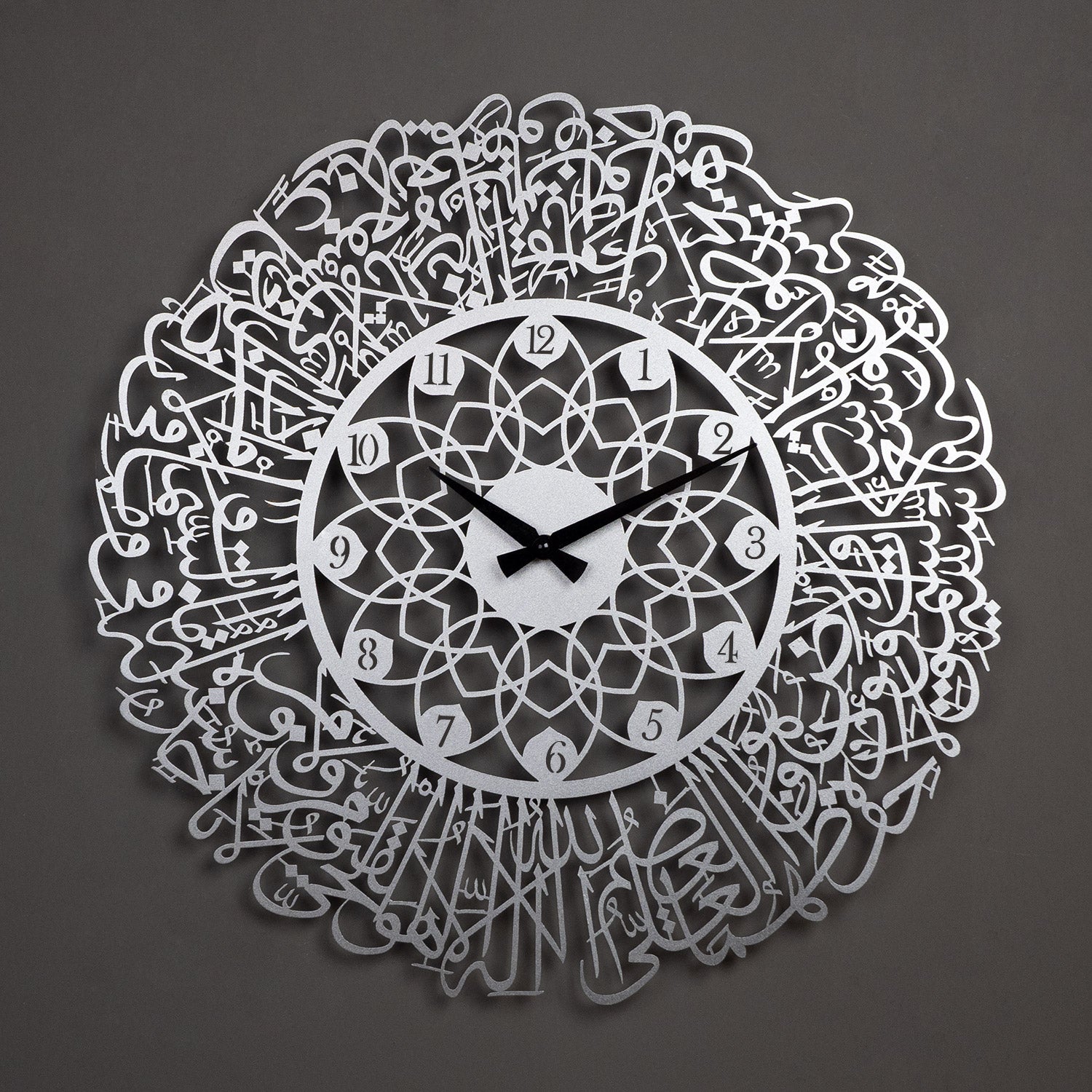 Metal Ayatul Kursi Islamic Wall Clock with Arabic Calligraphy for Muslim Homes