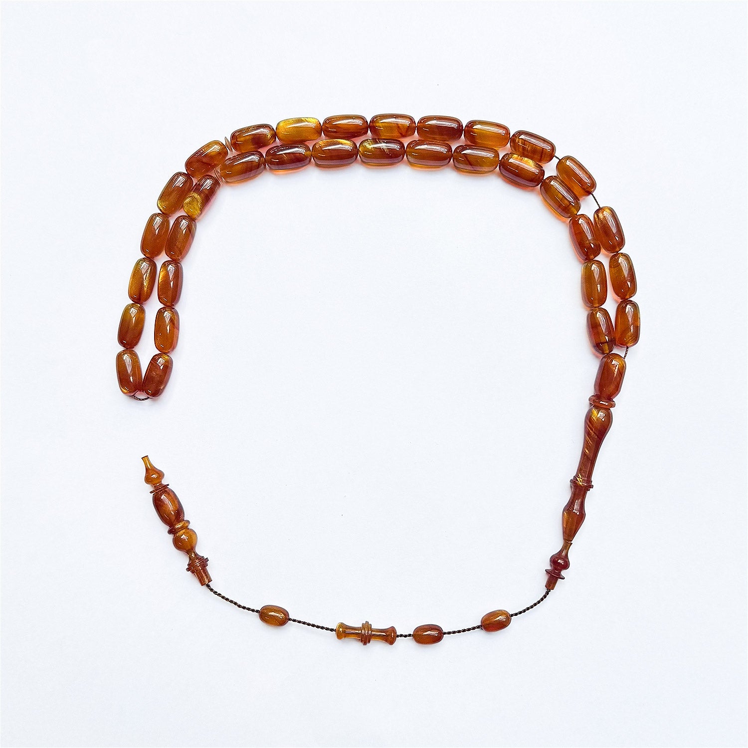 This handcrafted tasbeeh features custom cast Catalin beads with a smooth form, offering a balanced presence that combines visual depth with a comfortable, flowing grip.