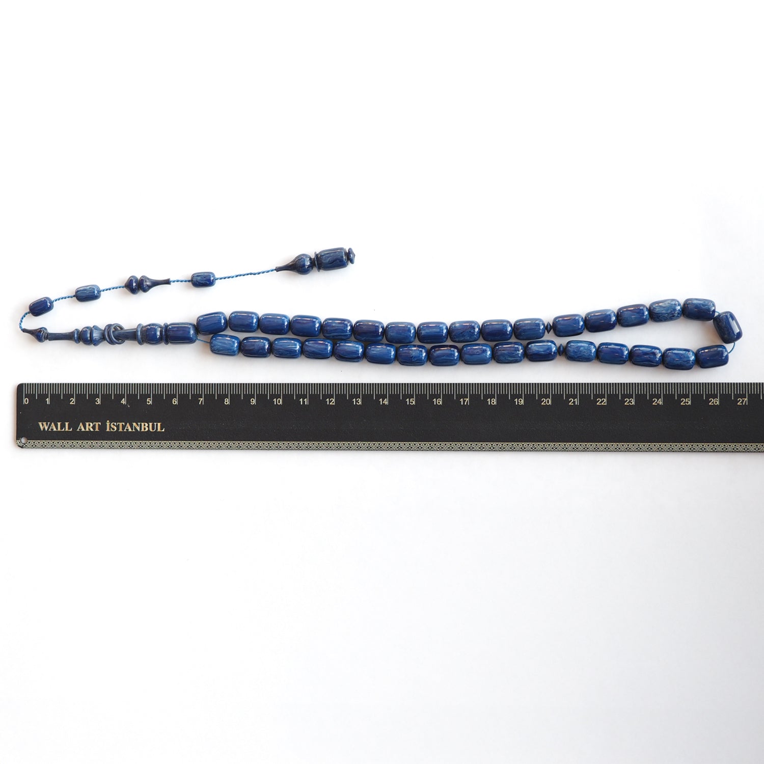 This handcrafted tasbeeh features custom cast Catalin 33 beads with a smooth form, offering a balanced presence that combines visual depth with a comfortable, flowing grip.