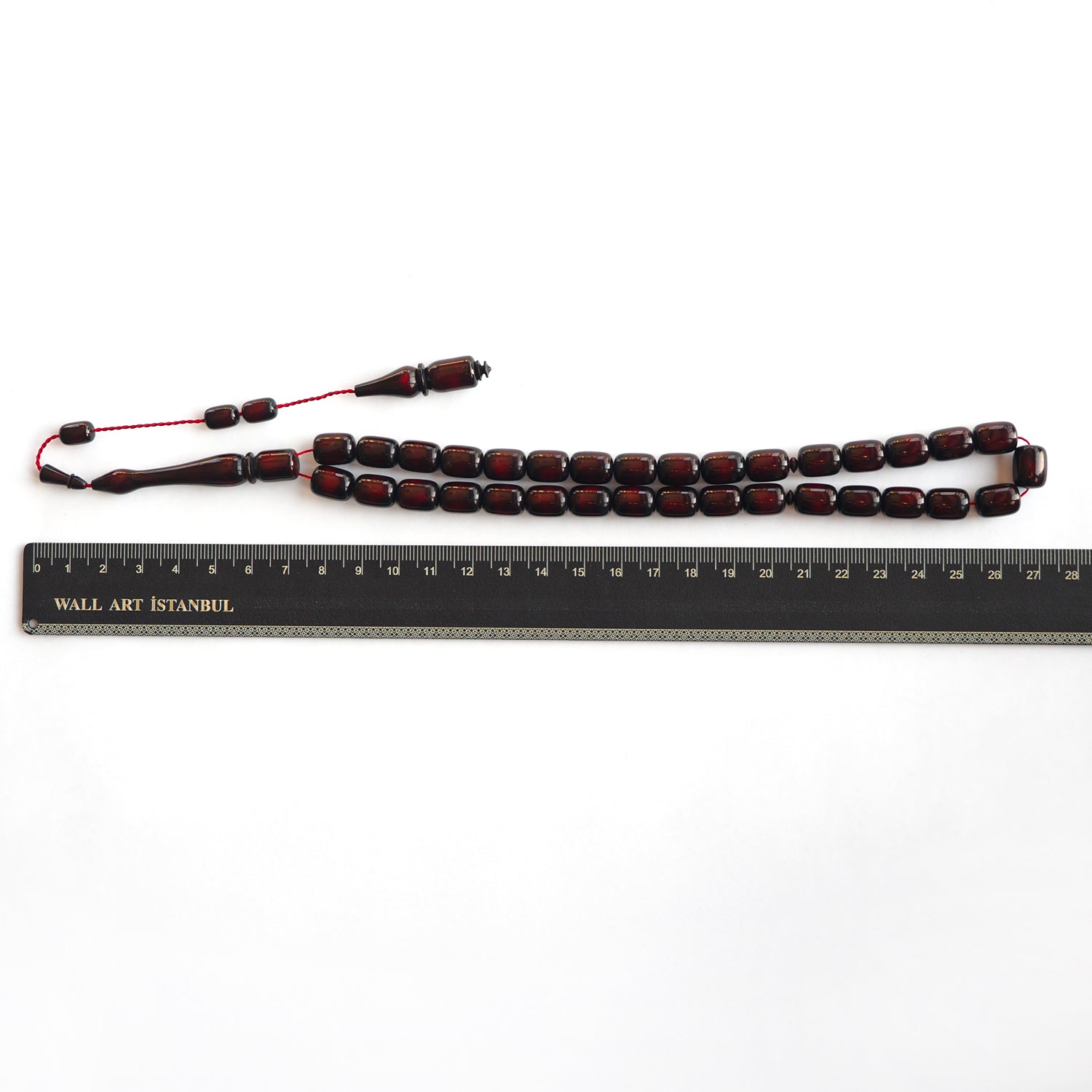 This handcrafted tasbeeh features custom cast Catalin 33 beads with a smooth form, offering a balanced presence that combines visual depth with a comfortable, flowing grip.