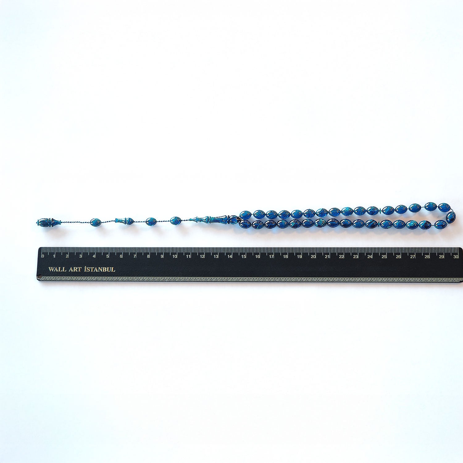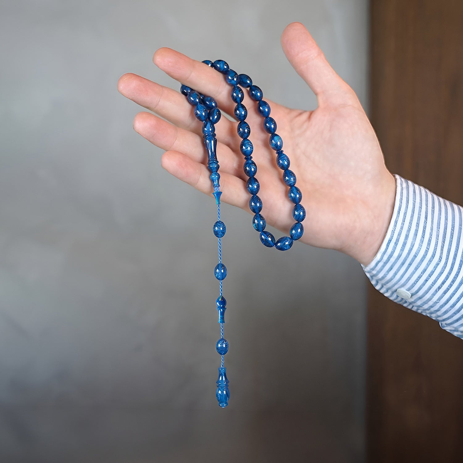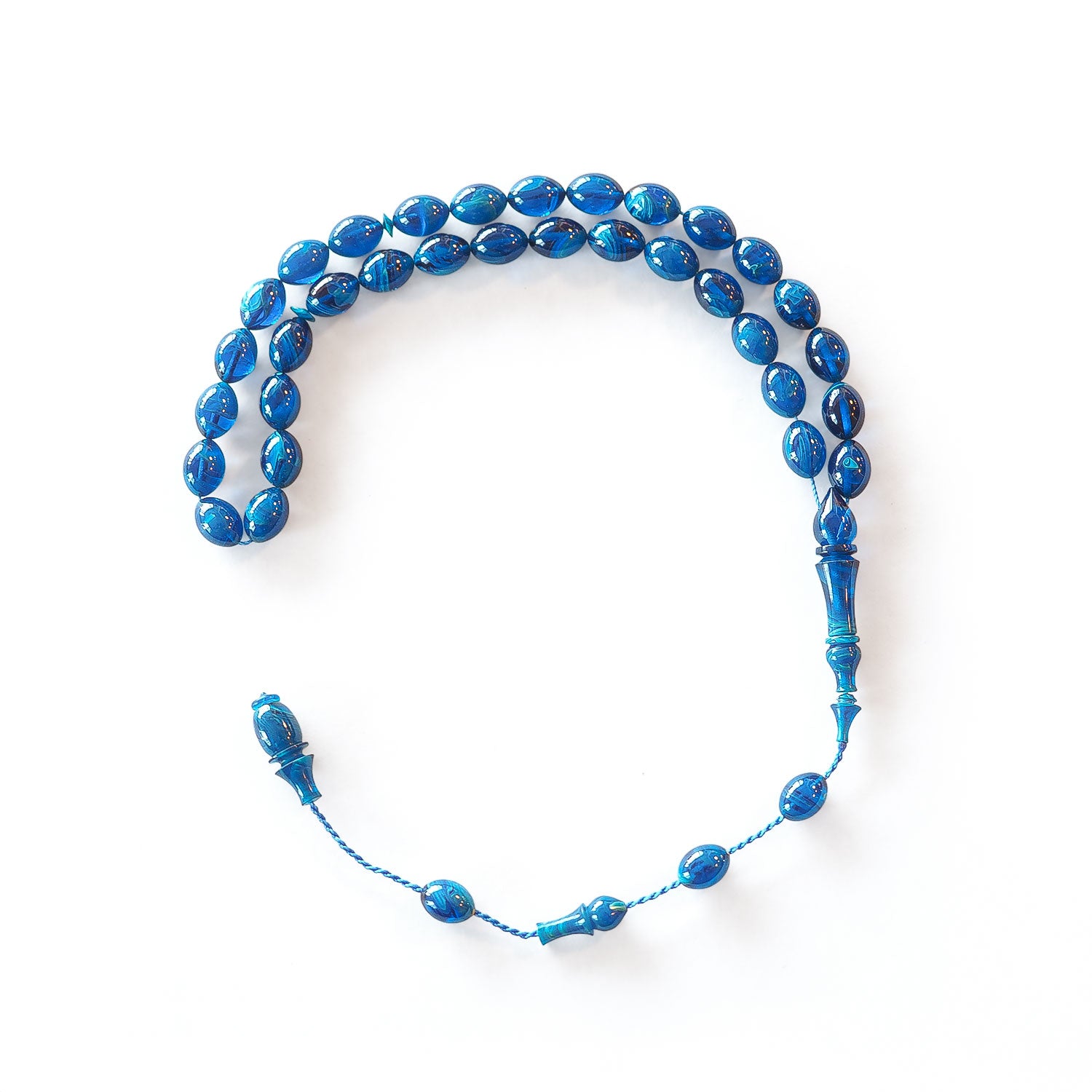 This handcrafted tasbeeh features custom cast Catalin 33 beads with a smooth form, offering a balanced presence that combines visual depth with a comfortable, flowing grip.