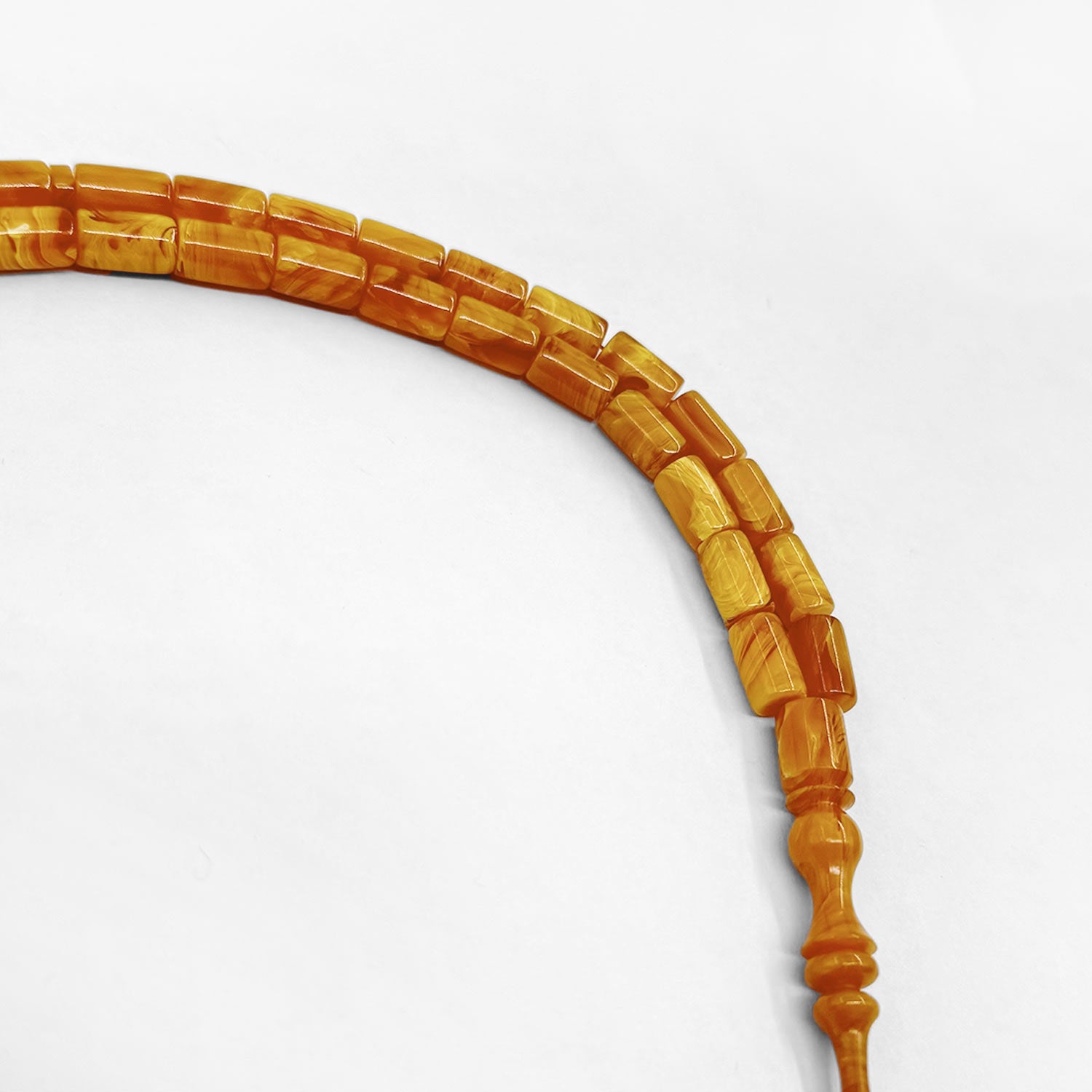 This handcrafted tasbeeh features custom cast Catalin beads with a smooth form, offering a balanced presence that combines visual depth with a comfortable, flowing grip.