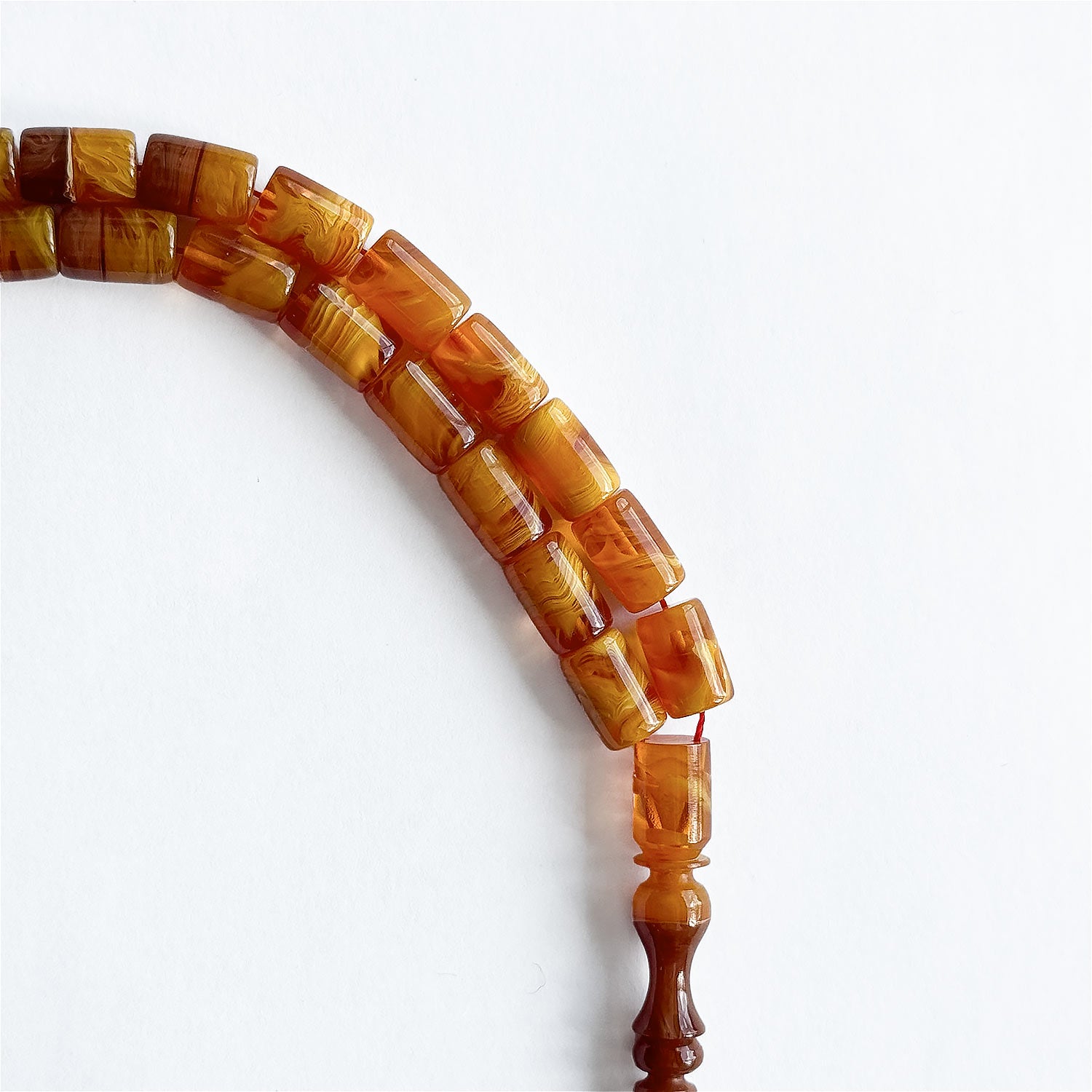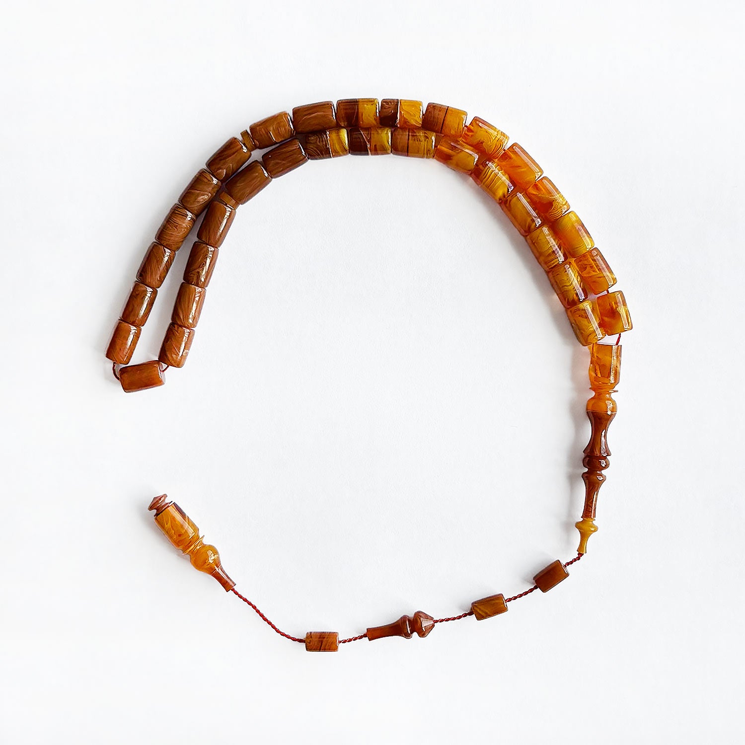 This handcrafted tasbeeh features custom cast Catalin beads with a smooth form, offering a balanced presence that combines visual depth with a comfortable, flowing grip.