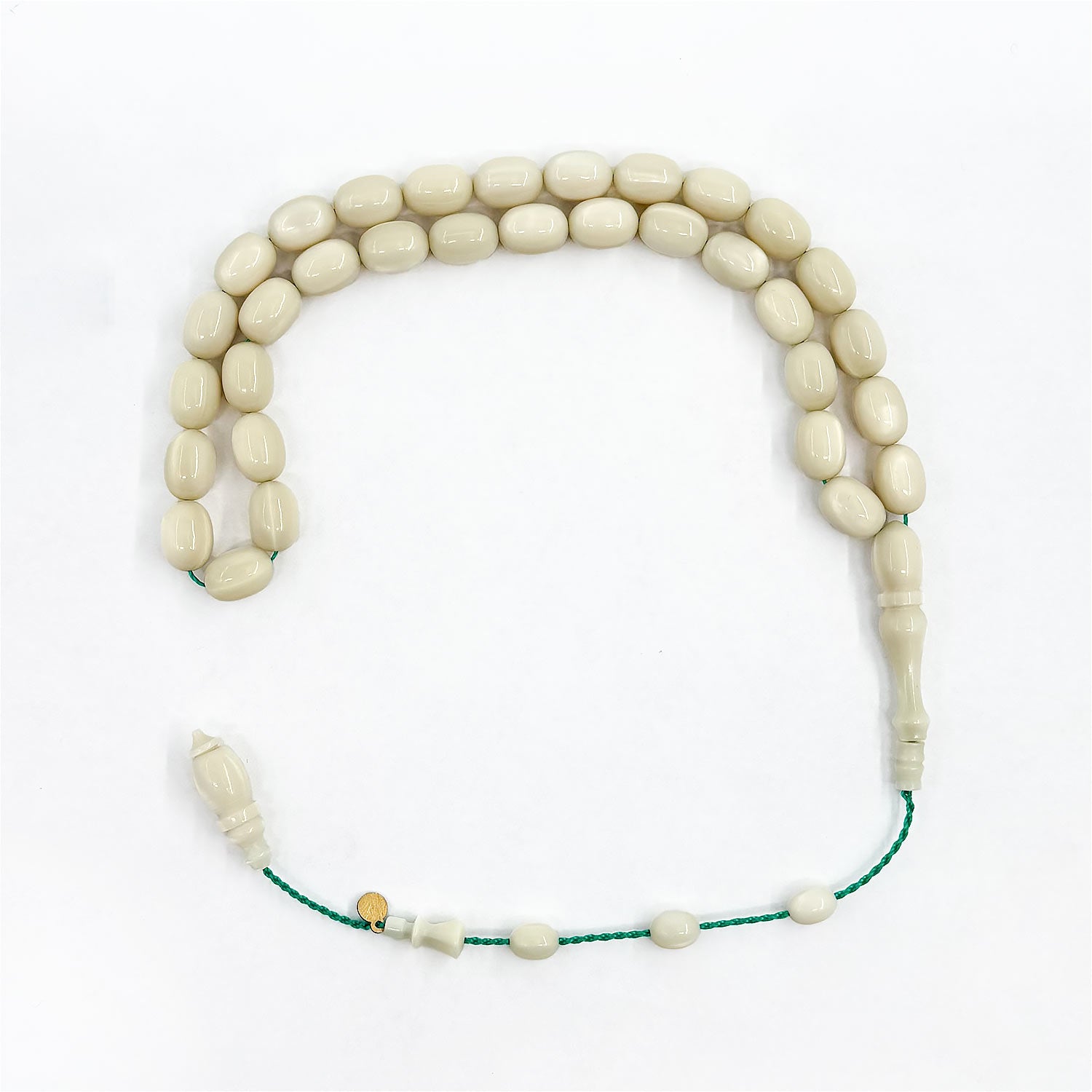 French Galalith beads form this handcrafted 33 beads tasbeeh, offering a smooth, tactile feel perfect for daily prayer and spiritual reflection.