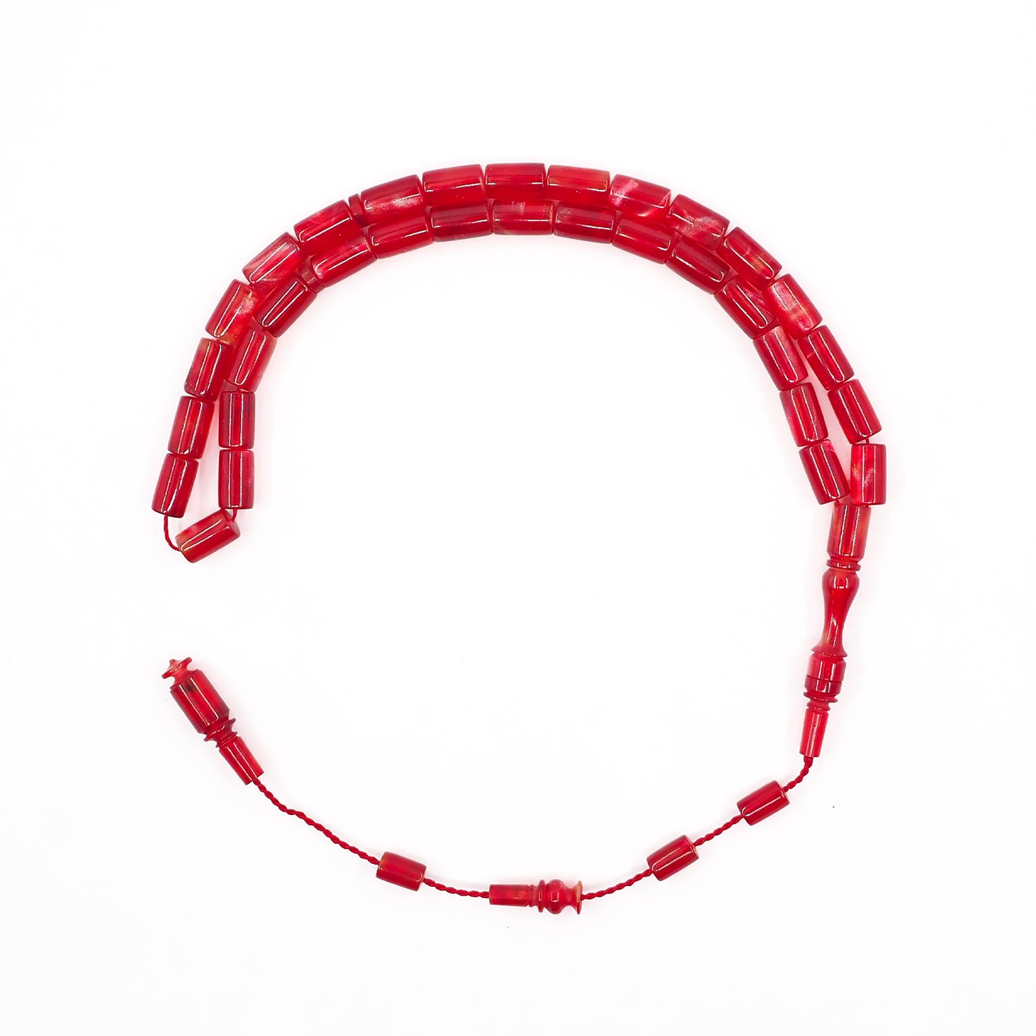 This handcrafted tasbeeh features custom cast Catalin beads with a smooth form, offering a balanced presence that combines visual depth with a comfortable, flowing grip.