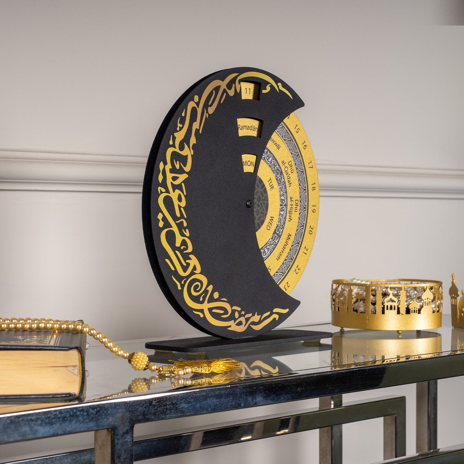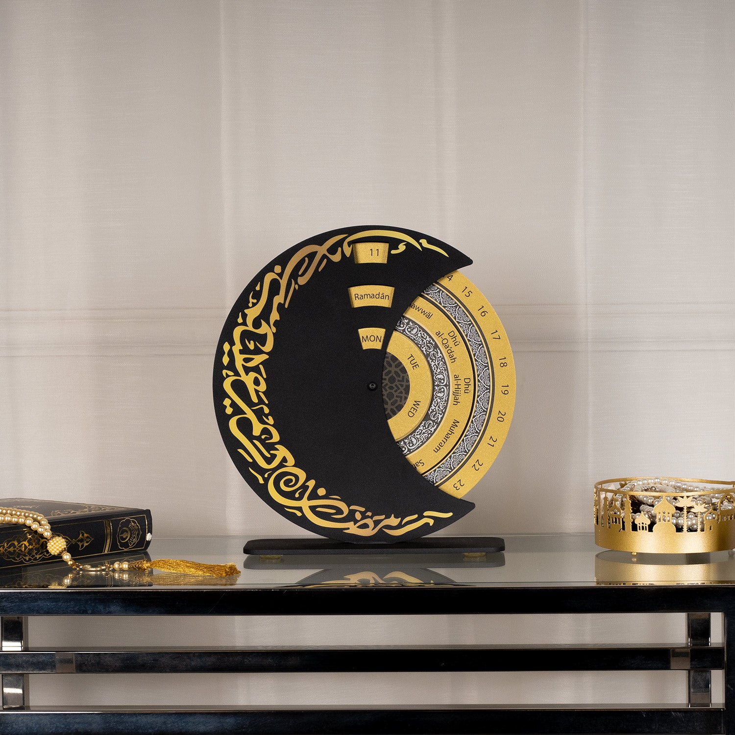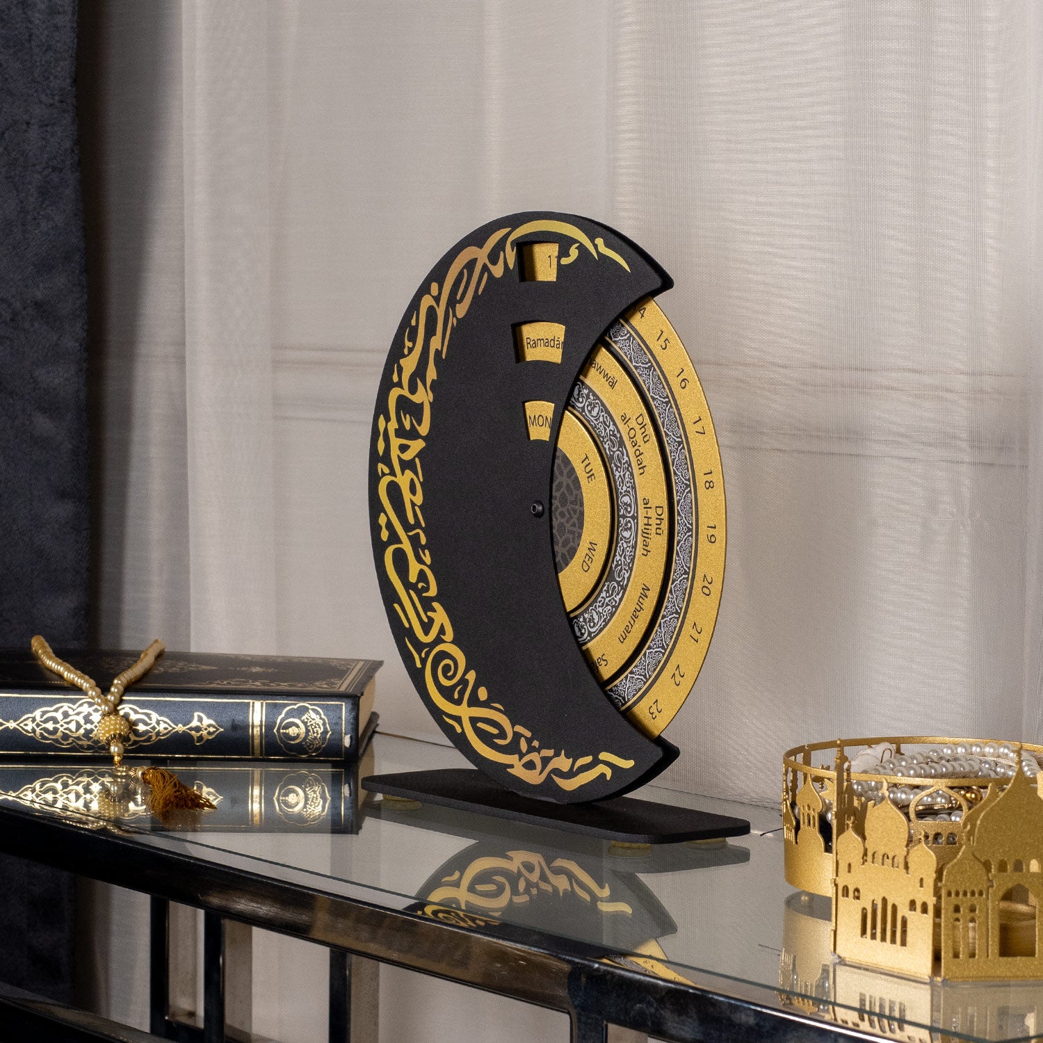 This elegant metal Hijri table calendar blends timeless Arabic calligraphy with daily practicality, offering a beautiful, spiritual centerpiece for your home that both honors tradition and enriches everyday moments.