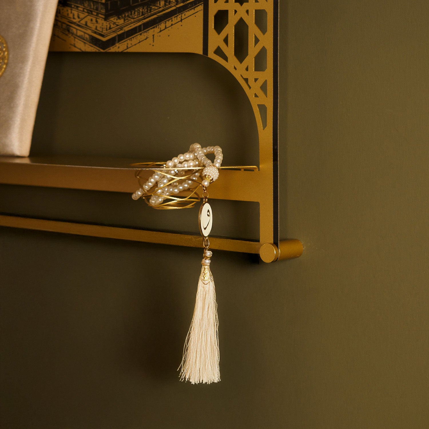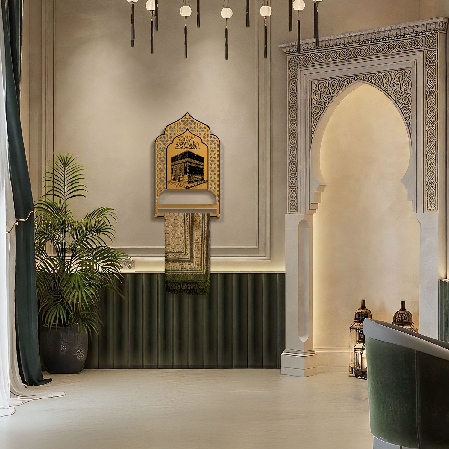 Metal Prayer Rug Holder & Islamic Wall Shelf with Kaaba & Salah Dua - WAMH180