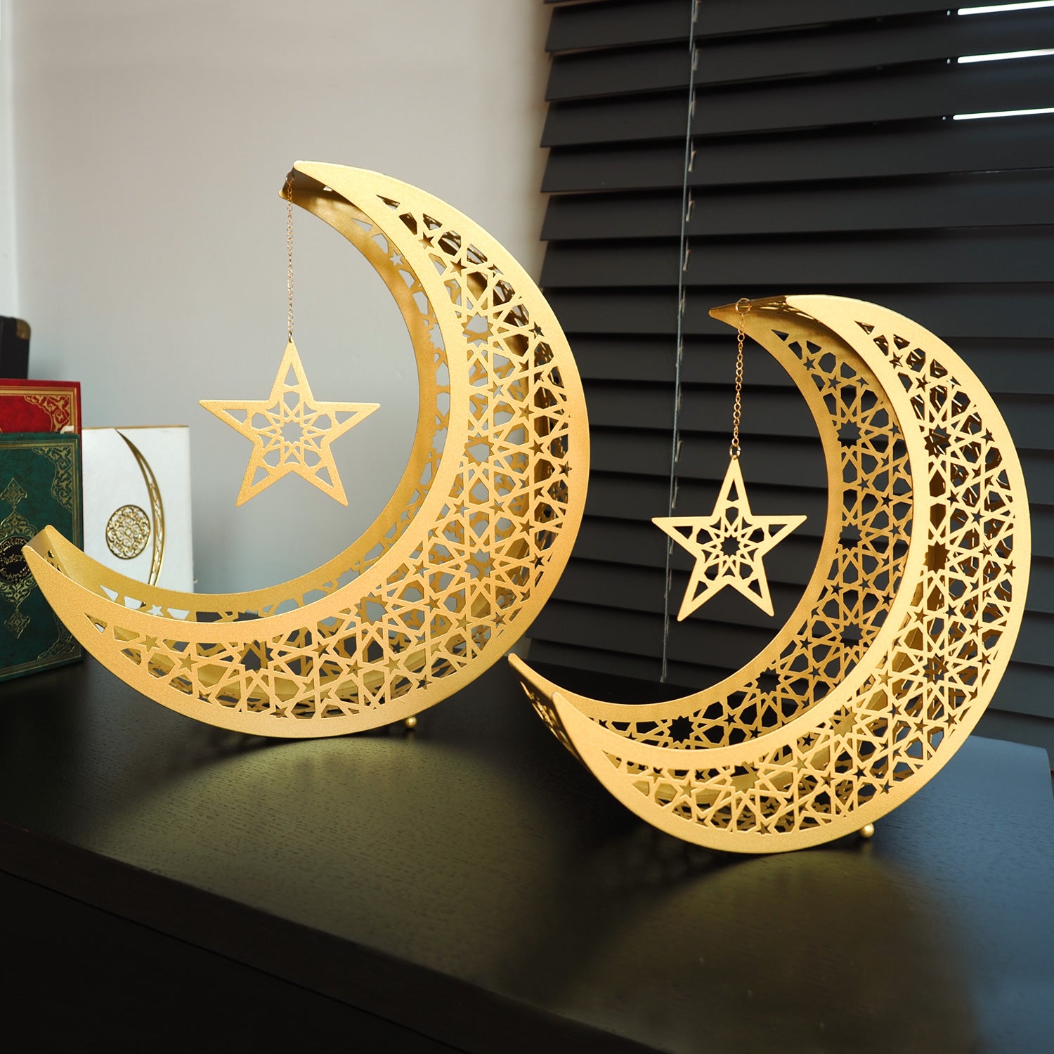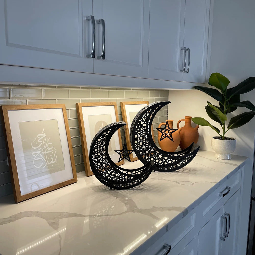 Celebrate the beauty of Ramadan — this elegant metal crescent-moon set transforms any corner into a haven of calm, honouring tradition while adding a graceful, spiritual touch to your home decor.