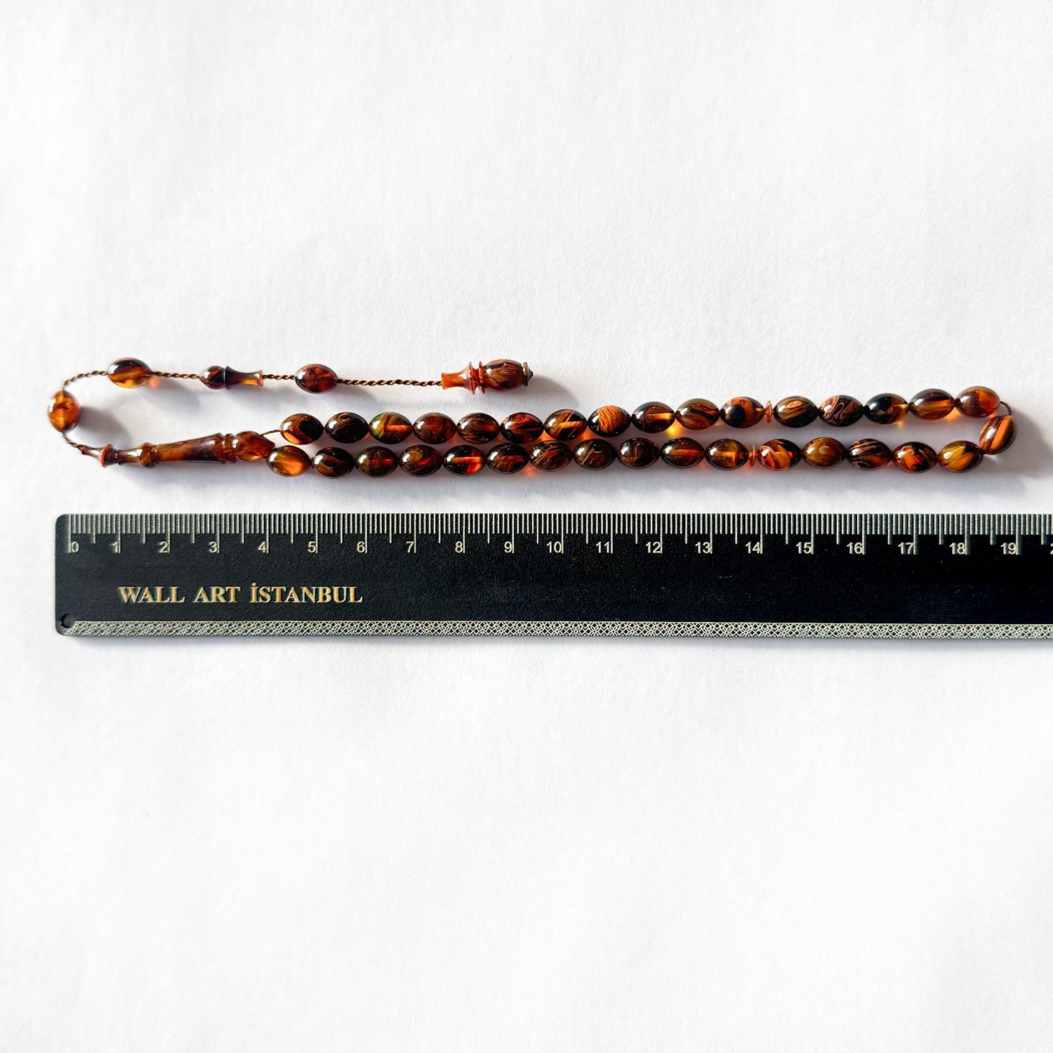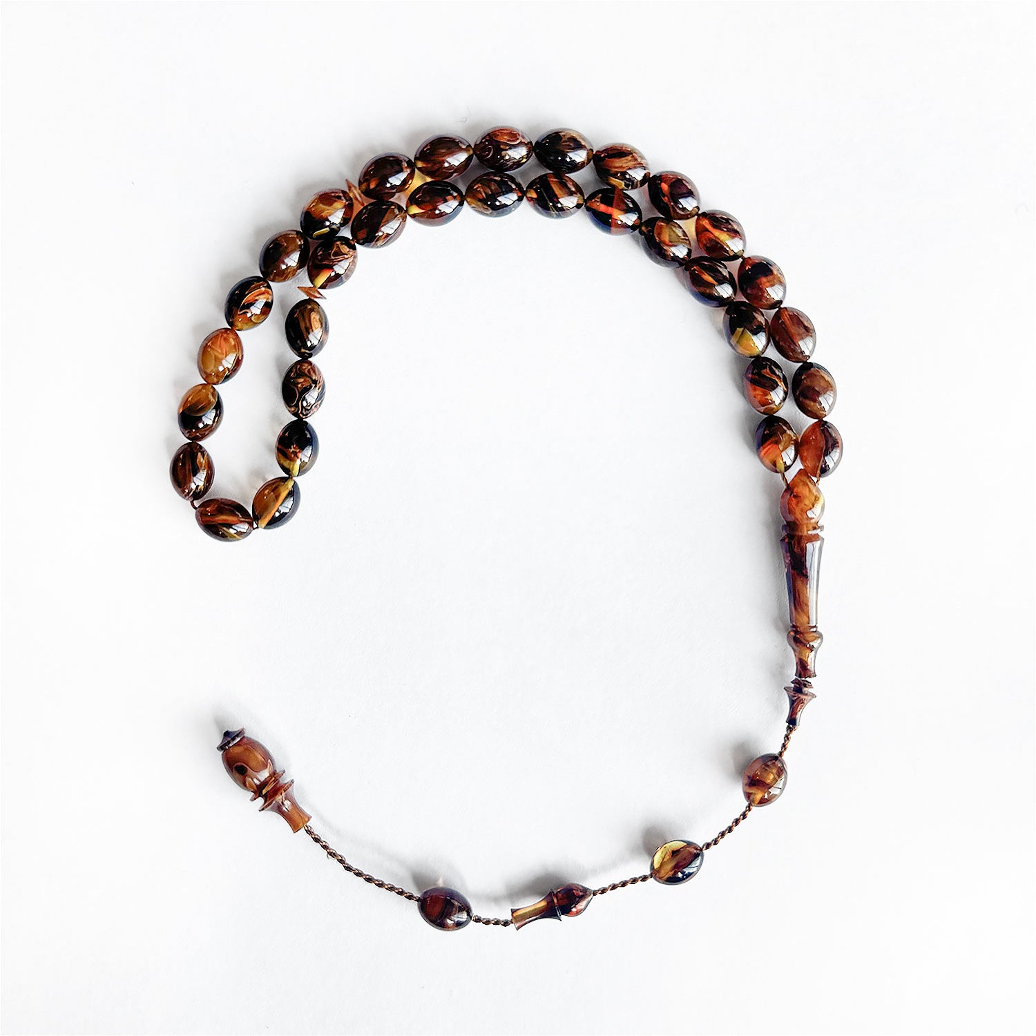 This handcrafted tasbeeh features custom cast Catalin beads with a smooth form, offering a balanced presence that combines visual depth with a comfortable, flowing grip.