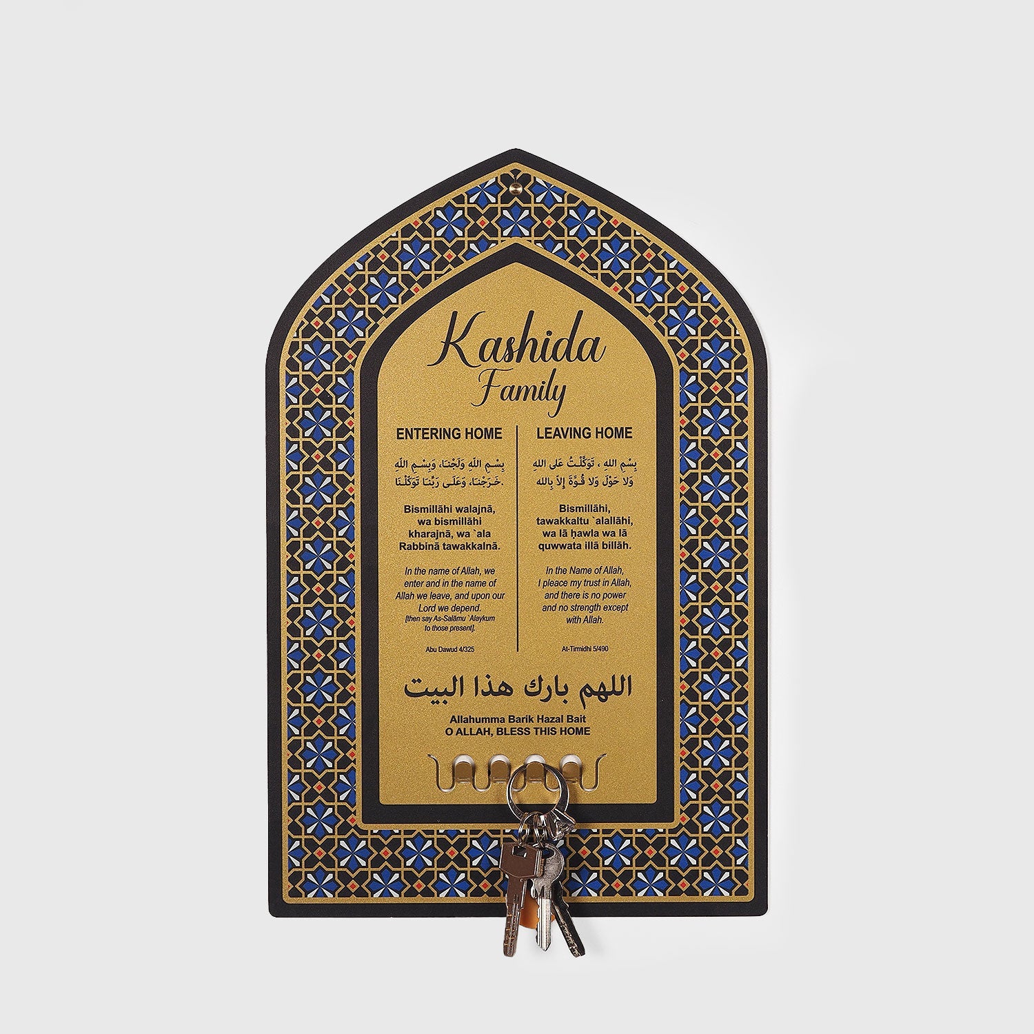 Dua for Entering and Leaving Home Written Personalized Metal Wall Key Hanger - WAMH161
