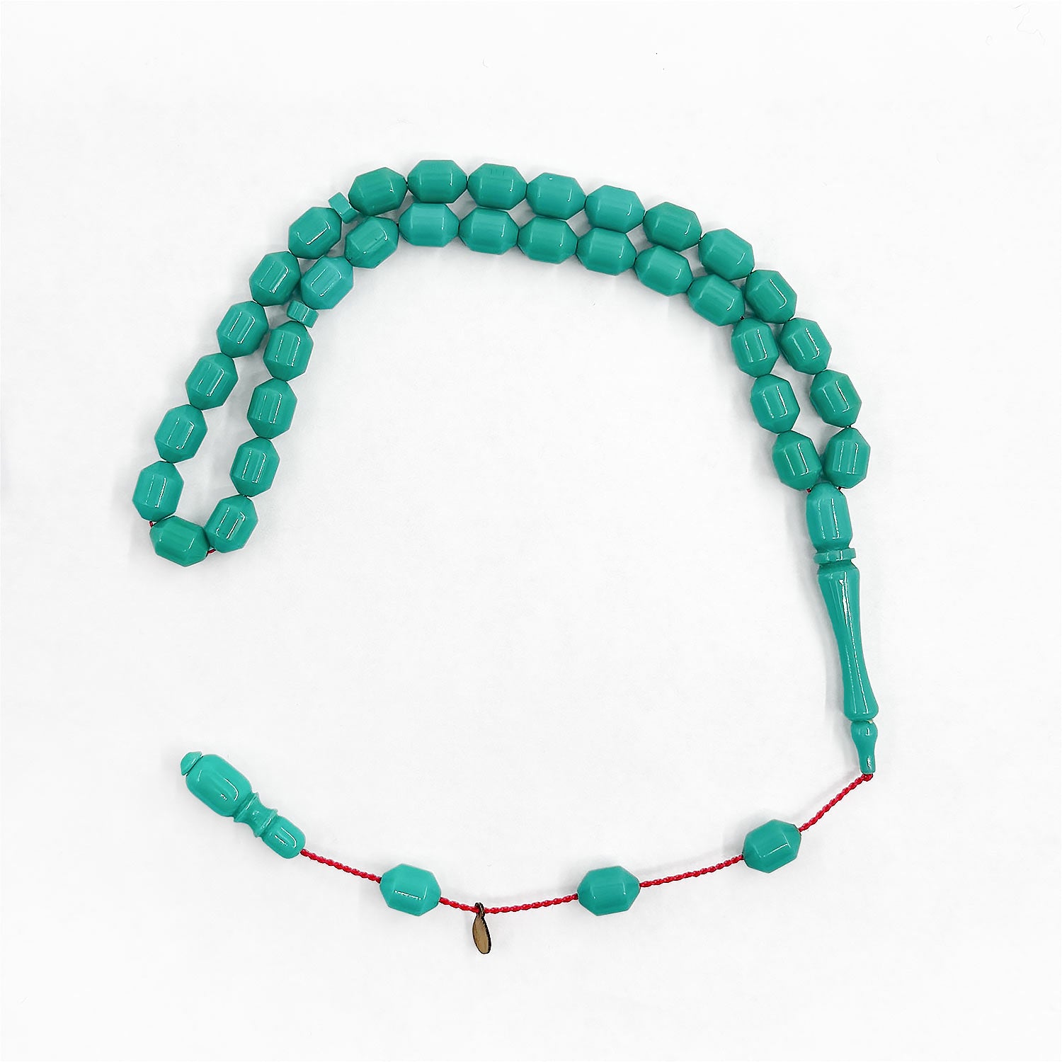 This handcrafted tasbeeh features custom cast Catalin beads with a smooth form, offering a balanced presence that combines visual depth with a comfortable, flowing grip.