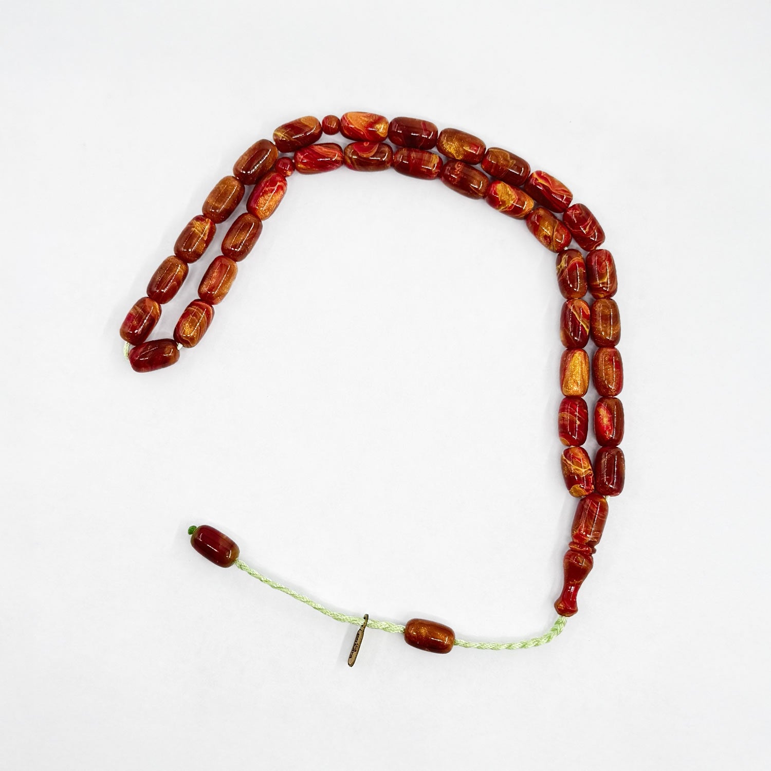 This handcrafted tasbeeh features custom cast Catalin beads with a smooth form, offering a balanced presence that combines visual depth with a comfortable, flowing grip.