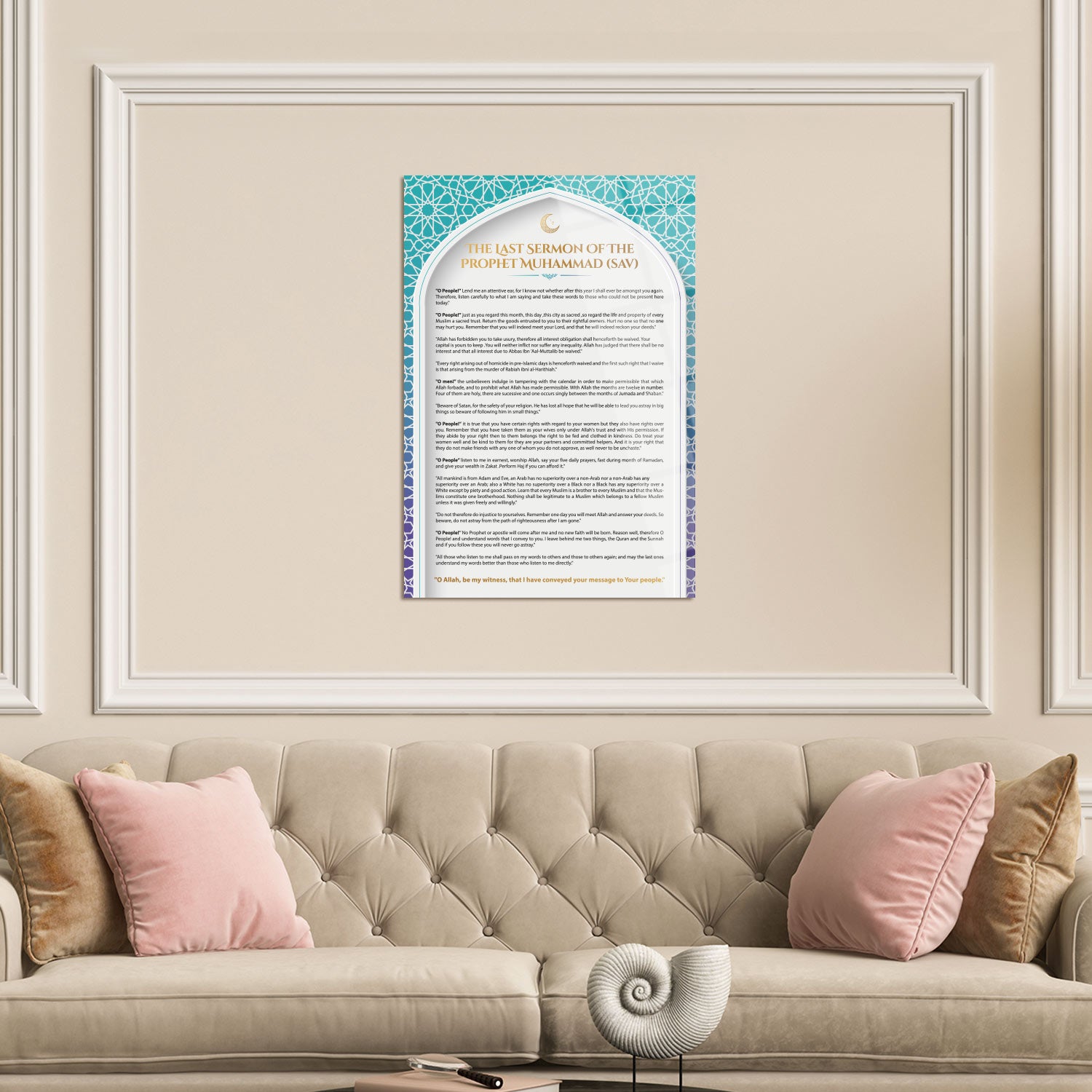 Displayed in the home, it serves as a meaningful reminder of the Prophet’s final guidance to humanity—encouraging believers to live with faith, respect, and responsibility toward one another.