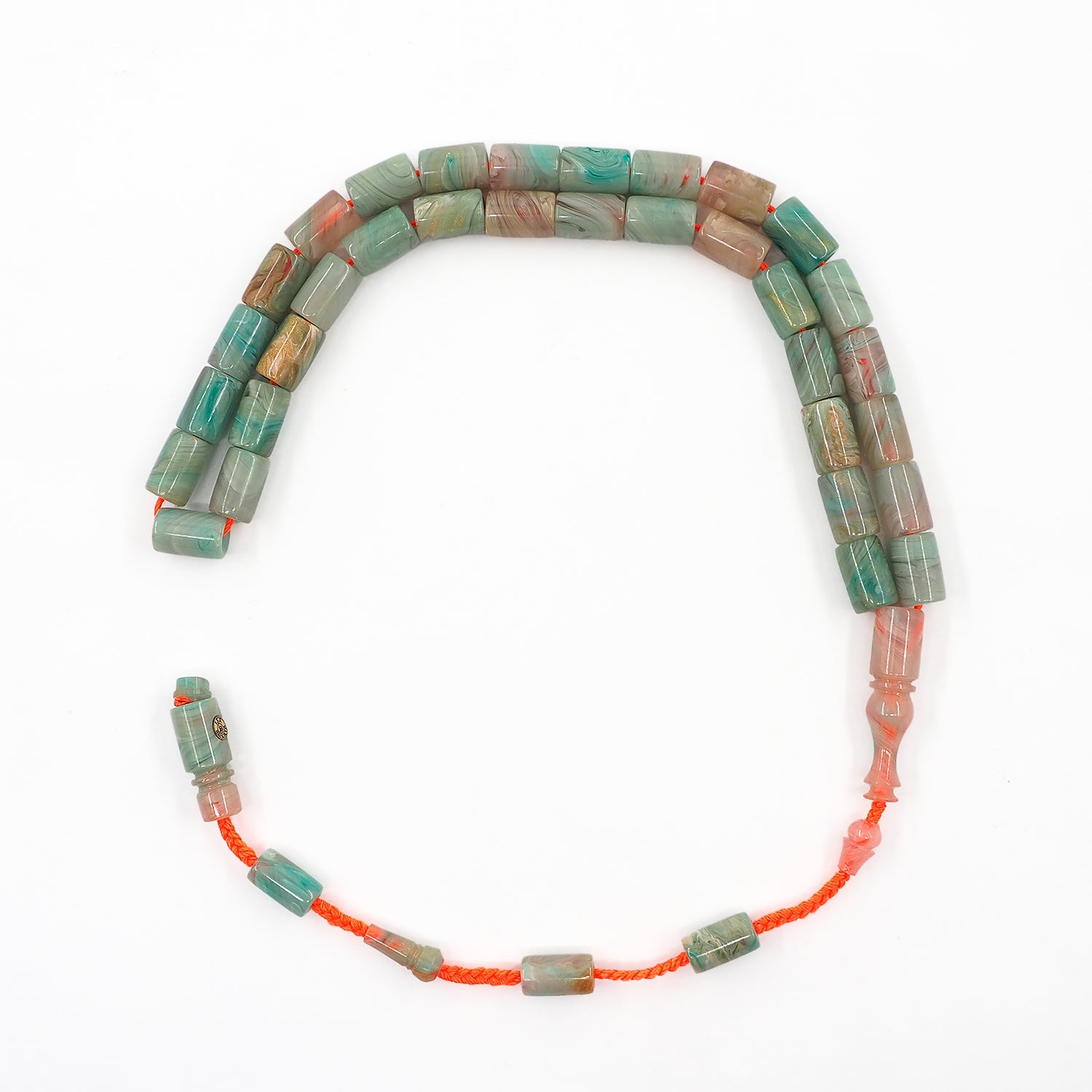 This handcrafted tasbeeh features custom cast Catalin beads with a smooth form, offering a balanced presence that combines visual depth with a comfortable, flowing grip.